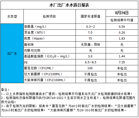 水廠出廠水水質日報表(2025-8-24)