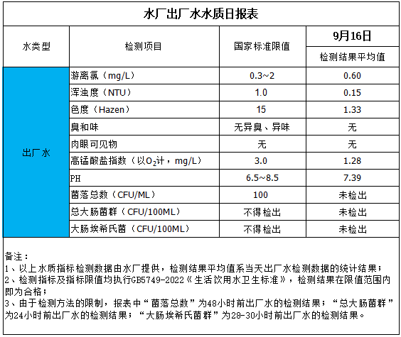 水廠出廠水水質(zhì)日報表(2025-9-16)