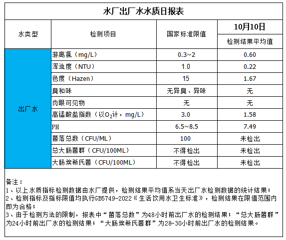 水廠出廠水水質(zhì)日報表(2025-10-10)