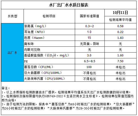 水廠出廠水水質(zhì)日報表(2025-10-11)