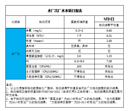 水廠出廠水水質(zhì)日?qǐng)?bào)表(2023-5-1)