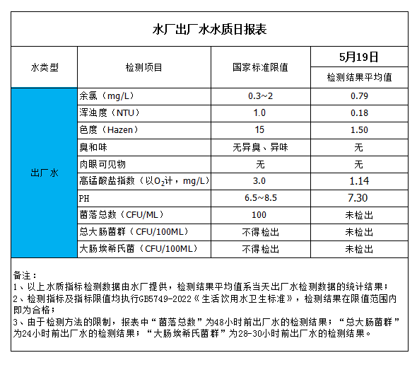 水廠出廠水水質(zhì)日報表(2023-5-19)