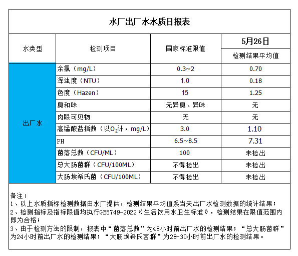 水廠出廠水水質(zhì)日?qǐng)?bào)表(2023-5-26)