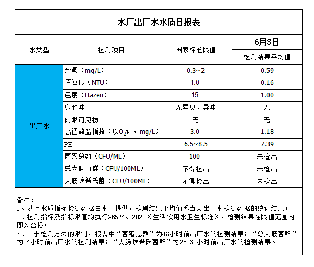 水廠出廠水水質(zhì)日報表(2023-6-3)