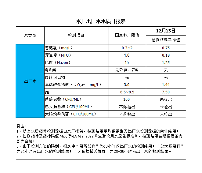 水廠出廠水水質(zhì)日報(bào)表(2023-12-26)