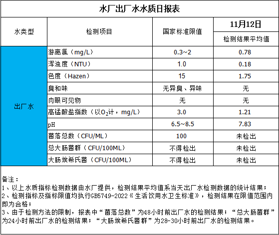 水廠出廠水水質(zhì)日報表(2024-11-12)